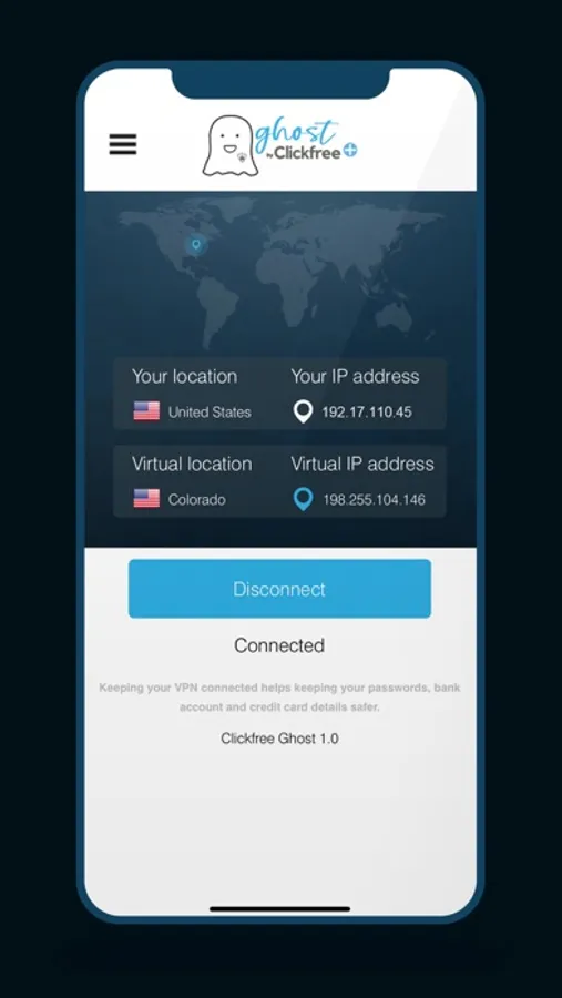 Download Clickfree Ghost and you’ll get a fast and encrypted internet connection wherever you go. It will protect your sensitive information from cybercriminals and others online.