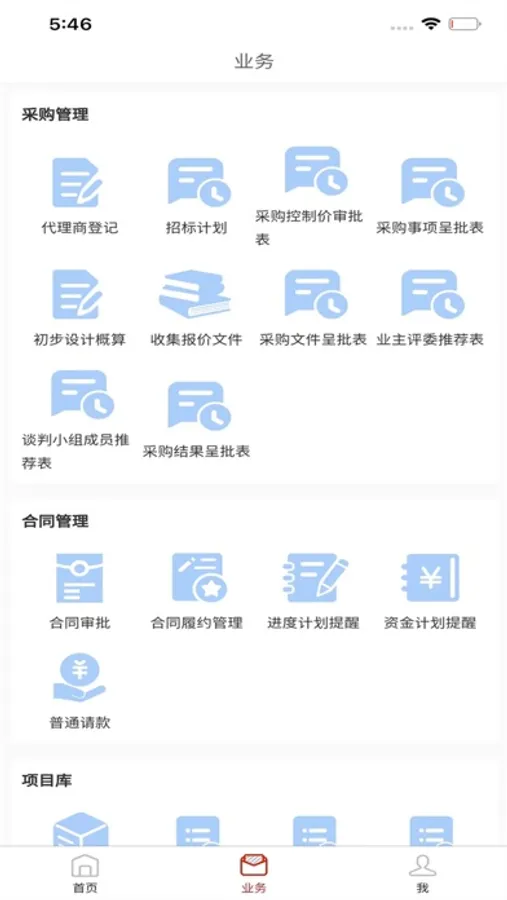 交投集团智慧经营平台,是一个为公司便捷办公服务提供的智慧经营app。涵盖采购管理、合同管理、项目管理、计财管理、资产管理以及综合办公等模块。