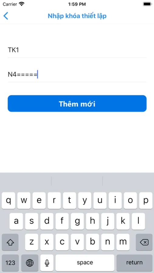 -Nhập khóa thiết lập: Cho phép người dùng thêm mới tài khoản bằng cách nhập khóa thiết lập. Khi người dùng đăng nhập trên Mobile hệ thống sẽ sinh ra một chuỗi mã theo tài khoản của người dùng.