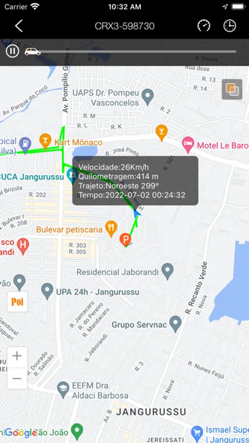 O mais completo sistema de rastreamento do mercado. De uma forma rápida e prática, nosso aplicativo permite que você localize seu veículo em tempo real, efetue o bloqueio em caso de furto ou roubo, escolha limite de velocidade máxima, cerca geográfica, verifique seu histórico de trajeto, voltagem da bateria, receba diversas notificações em caso de uso indevido do seu veículo.