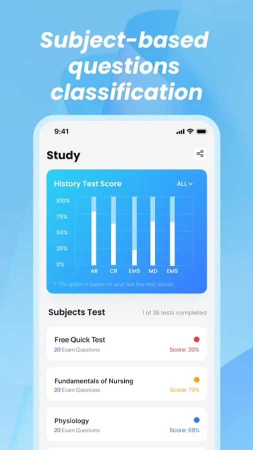 ▸All subjects big collectionWe have developed practice questions for 4 standard subjects, and you can focus on any subject in your time.Safe and Effective Care EnvironmentHealth Promotion and Maintenance Psychosocial Integrity Physiological Integrity