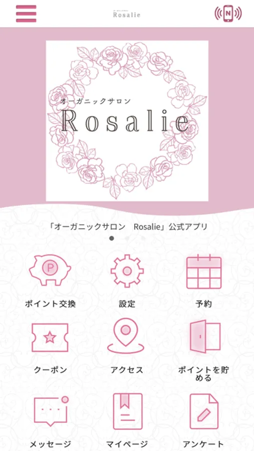 このアプリでは、Rosalieの最新情報の受け取りや便利な機能を使う事ができます。
