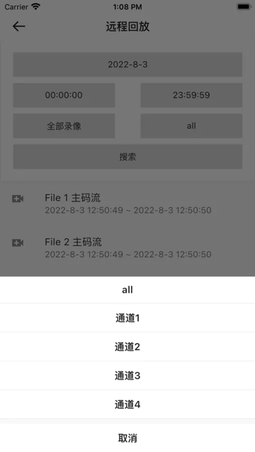 连接设备wifi,在app中查看设备远程回放,以及在线录像功能