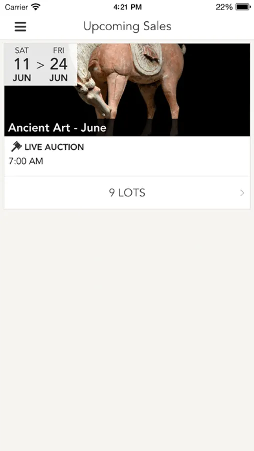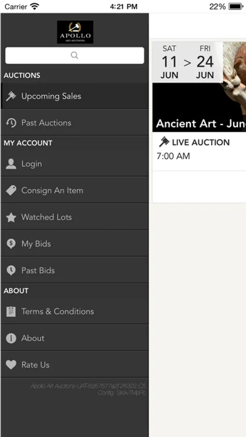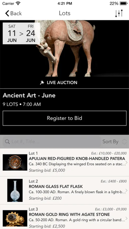 With the Apollo Art Auctions app, you can preview, watch and bid in our auctions from your mobile / tablet device. Participate in our sales while on-the-go and gain access to our following features: