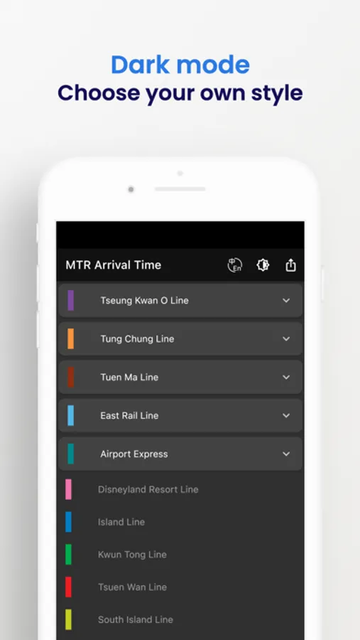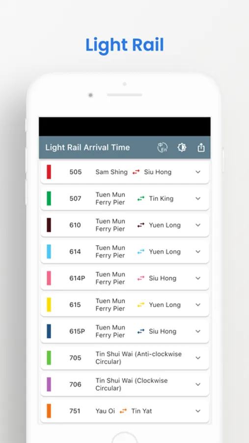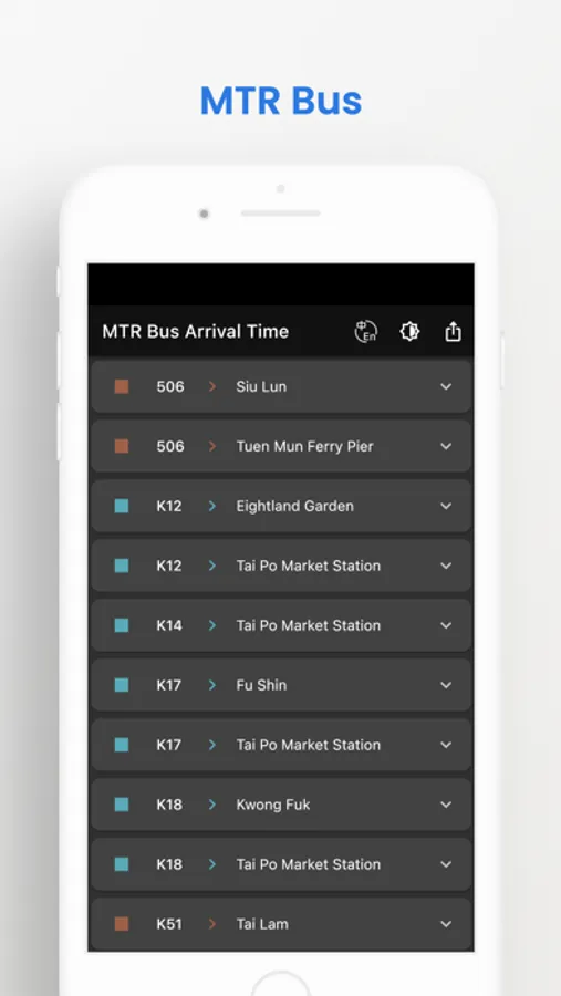 With the "MTR Arrival Time" app, passengers are now able to see the estimated arrival time for the selected MTR lines, Light Rail lines and MTR Bus routes.