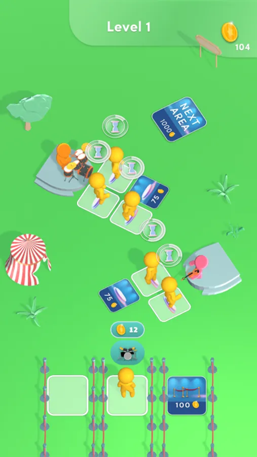 Lead the audience to the musical instrument which they desire and upgrade the concert area at the music festival!