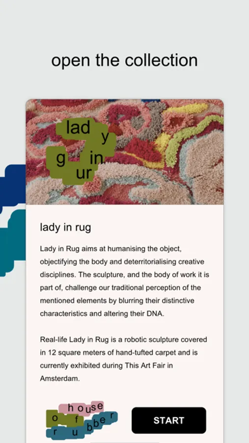 Our app uses the power of augmented reality in order to teleport you to digital spaces serving as extension of our physical sculptures. Wonder around, take pictures and immerse yourself in the wondrous House of Rubber.