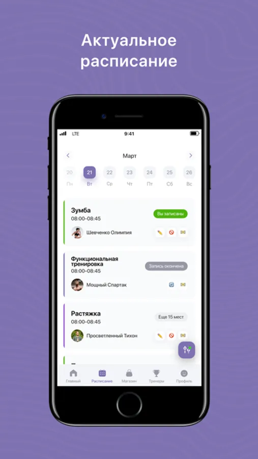 Увидеть актуальное расписание занятий;