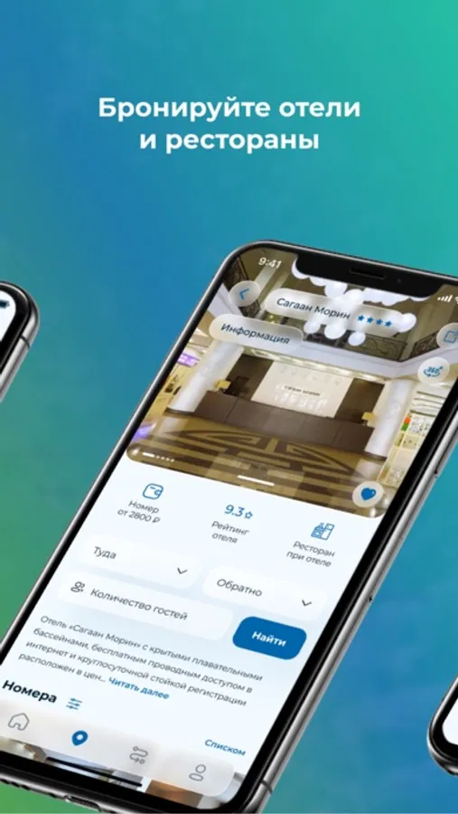 Не выходя из приложения вы можете спланировать свой отпуск на Байкале - подобрать и забронировать отель, получив возможность “прогуляться” по его интерьерам, оценить удобство номеров, познакомиться с убранством и меню местного ресторана, составить список мест, которые вы хотите посетить, и подобрать подходящие вам экскурсии от лучших гидов и туристических агентств региона.