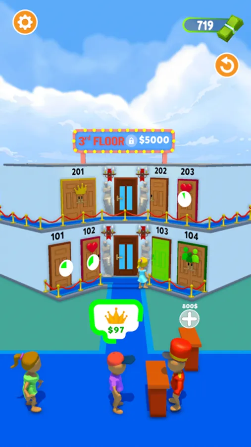 Buy new rooms and workers and serve more people by expanding your motel/hotel.