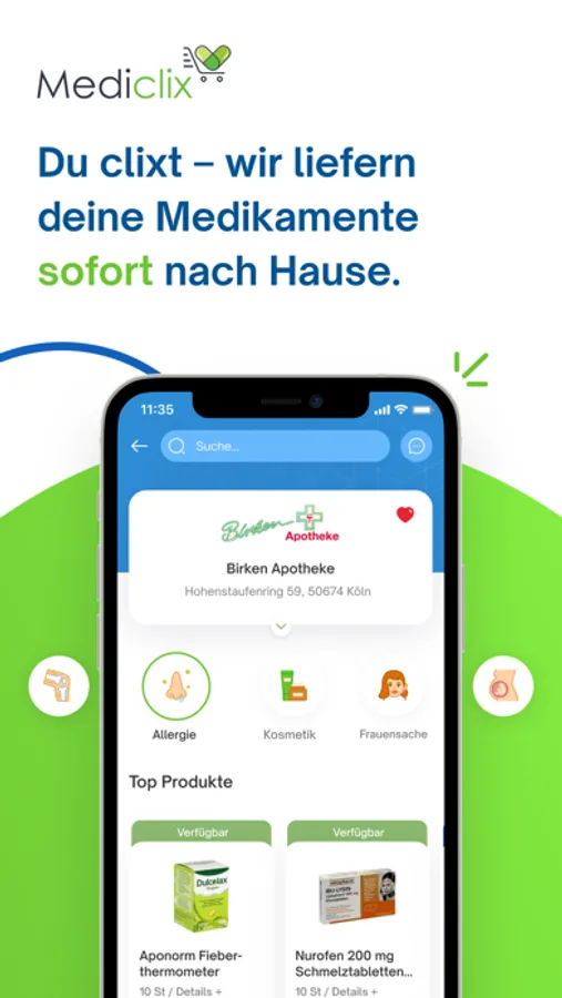 Wir liefern dir nicht verschreibungspflichtige Medikamente aus deiner Apotheke vor Ort direkt nach Hause.