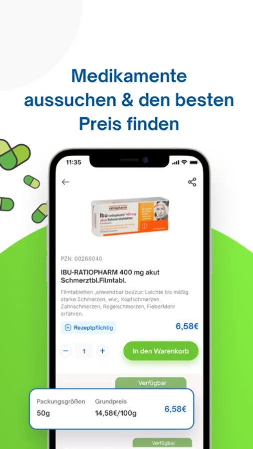 Adresse eingeben – Apotheke finden – Medikamente in den Warenkorb packen – Bestellen & in Minuten erhalten.