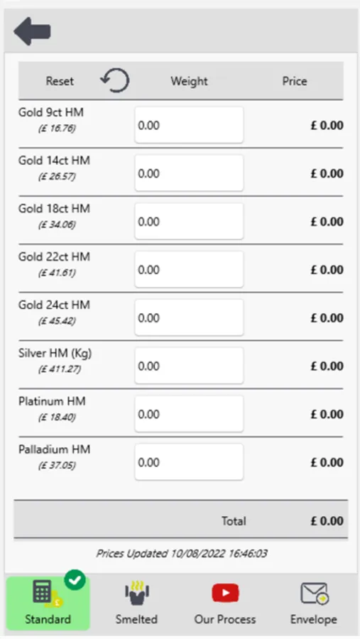 SMP Gold bullion dealers official app. Use the Metal Pricing Calculator to get our up to date prices and order a pre-paid envelope.