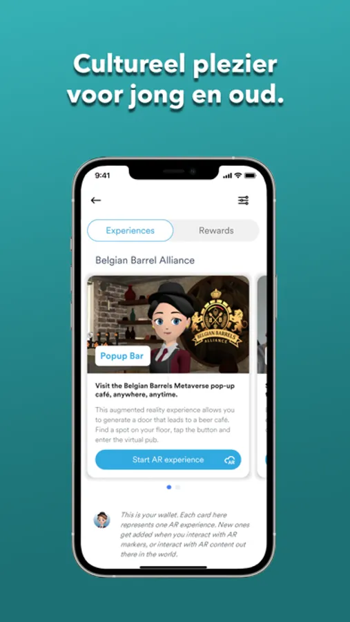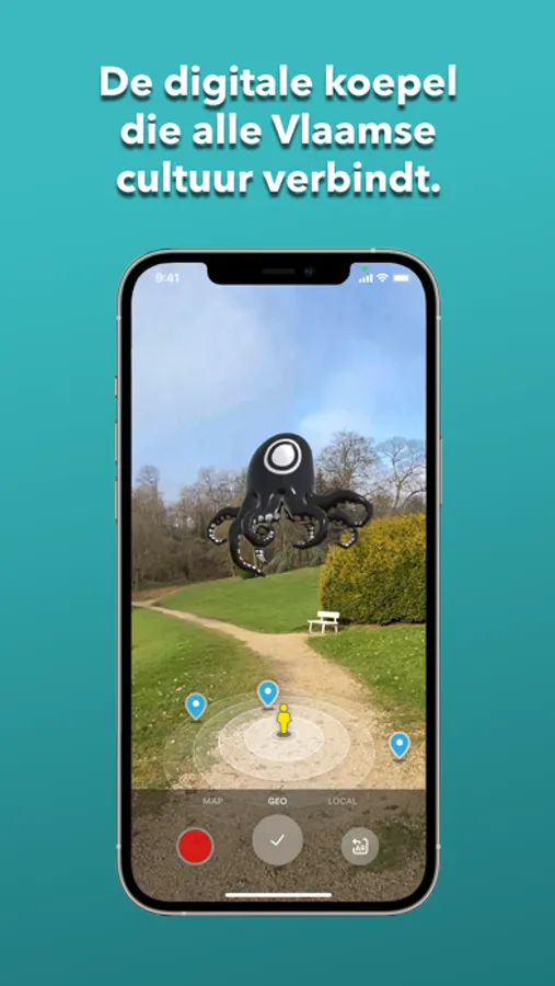 Centraal in deze app staat de augmented reality technologie, die op drie plekken in Vlaanderen culturele verhalen verteld in open lucht. Maar je hoeft niet zo nodig naar de kust, Antwerpen of Leuven te trekken om dit te ervaren, de reis begint in de meters rondom jou, waar je je ook bevindt. Druk de START AR ERVARING knop en je zal versteld staan.