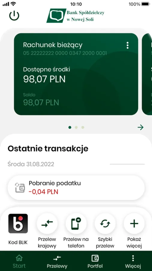 BS Nowa Sól Mobile to aplikacja dla klientów Banku Spółdzielczego w Nowej Soli, umożliwiająca w bezpieczny i wygodny sposób wykonywanie transakcji, autoryzowanie operacji wykonywanych w serwisie bankowości elektronicznej, a także pozwalająca na podgląd historii operacji, informacji o produktach, blokadach, saldach i szczegółach operacji.