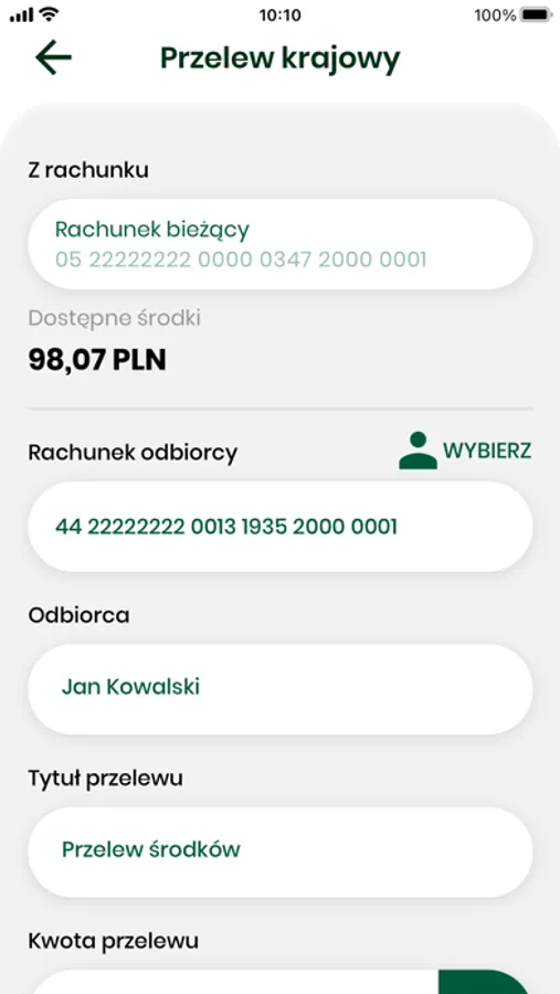 - wykonywanie przelewów krajowych, własnych i doładowań telefonów,