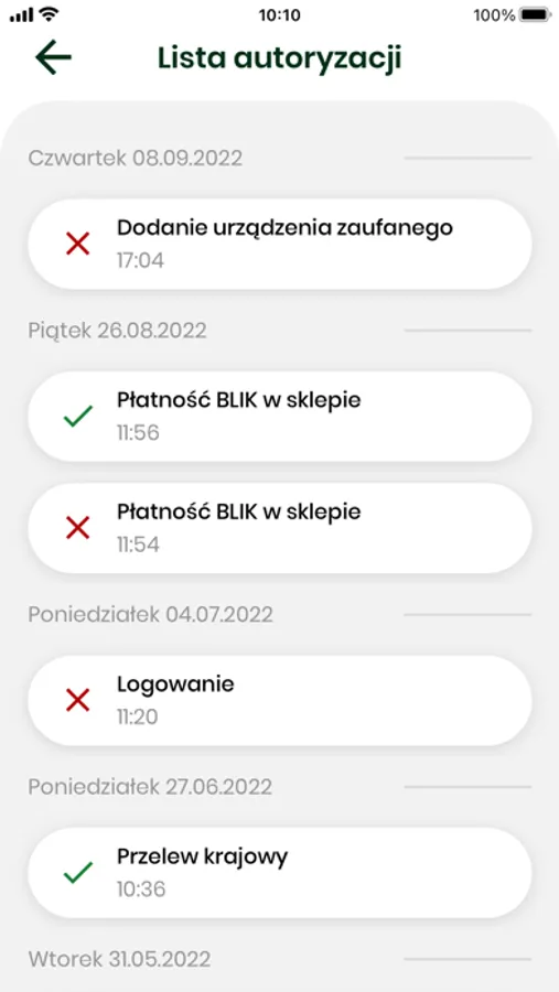 - wyświetlanie szczegółów każdej autoryzowanej operacji (m.in. kwoty operacji, danych odbiorcy przelewu),