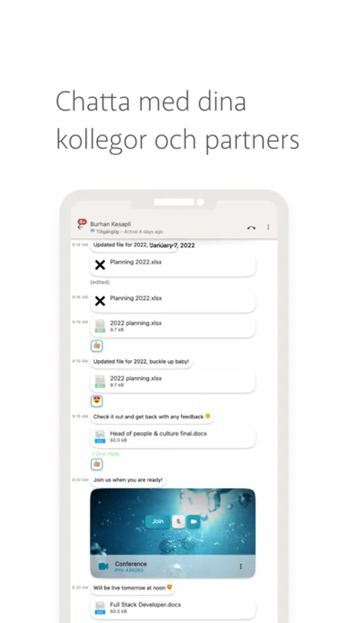 • Chatt – Knyt ihop teamet och chatta direkt med kollegor, skapa kanaler för olika avdelningar eller projekt