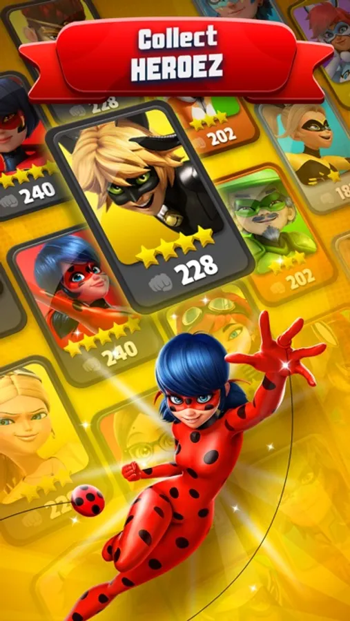 Recruit Miraculous heroes, villains, and Ladybug friends. Level them up to make them more powerful and build a strong team of Miraculous legends.