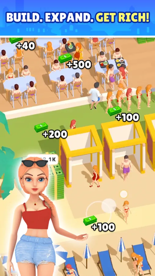 You can build gyms, hotels, restaurants, bars, beach playgrounds, and much more on your beach. Try your best to keep your visitors happy, and earn as much as you can while doing so!