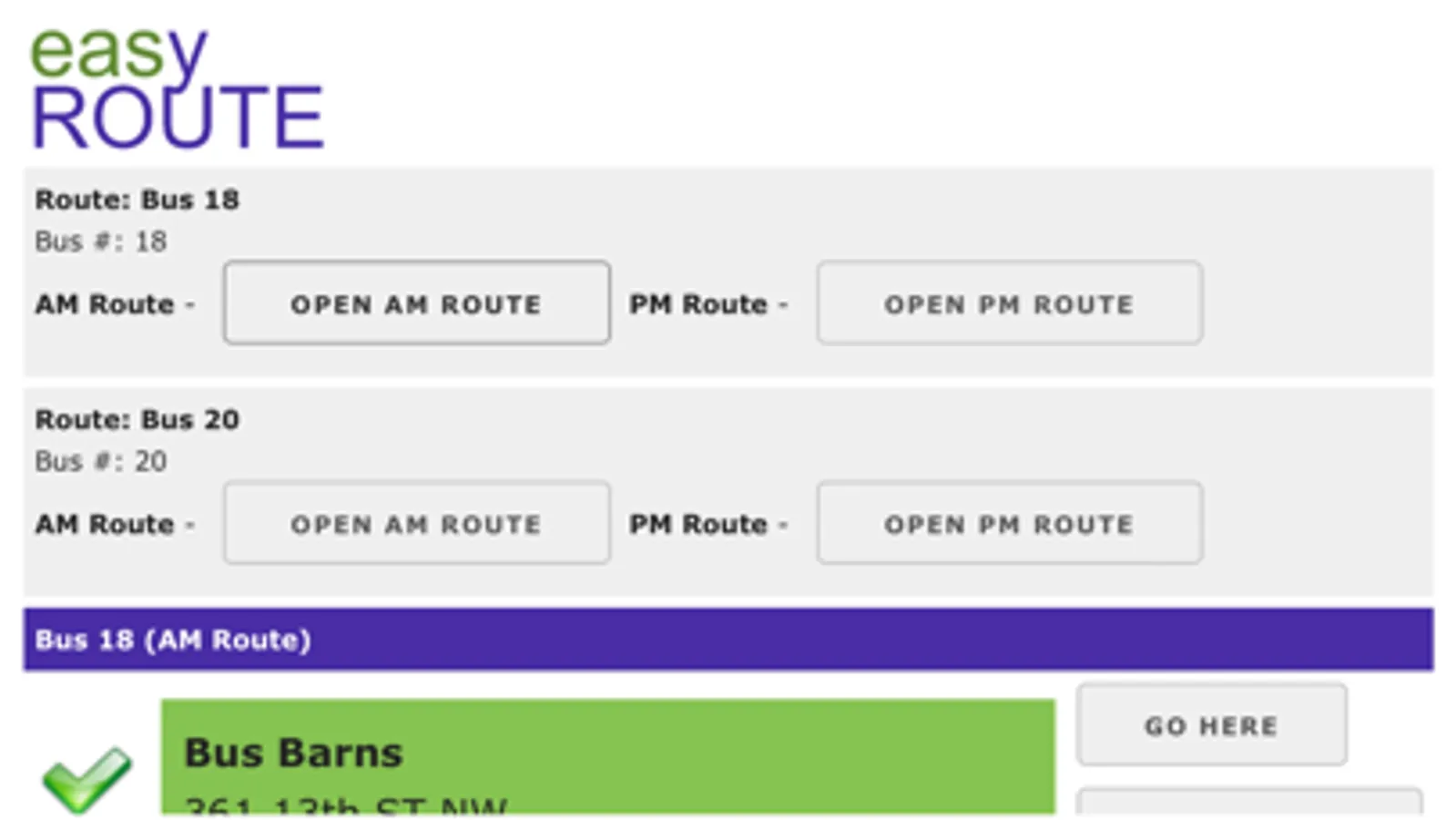 With easyROUTE, your new drivers are “shown the way” through the easyROUTE application paired with maps on an installed iPad or iPhone mounted in your buses, vans or other transport vehicles. List of the drivers stops of the left and turn-by-turn directions on the right help your drivers find where they need to go.