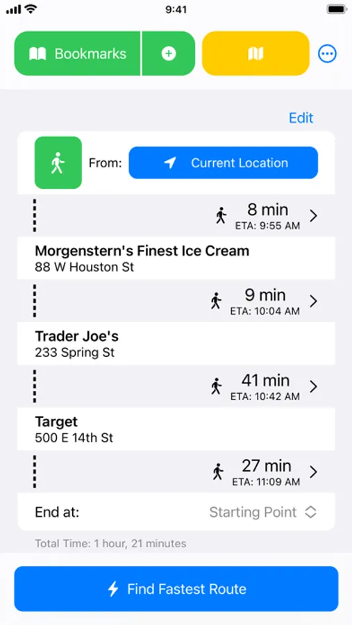 Live in a city? Fast Track supports driving, walking, and transit based routes.