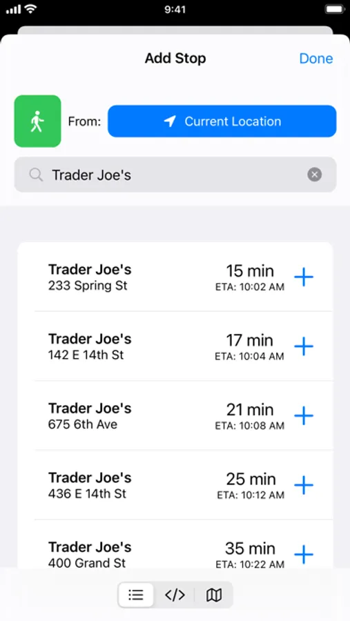 Not sure which store is actually closest? Use Compare Mode to find out based on real-time conditions or transit schedules.