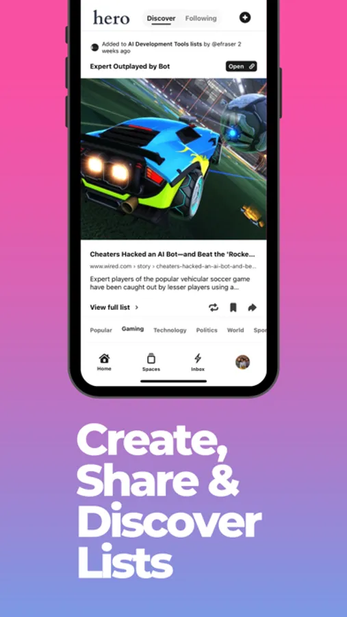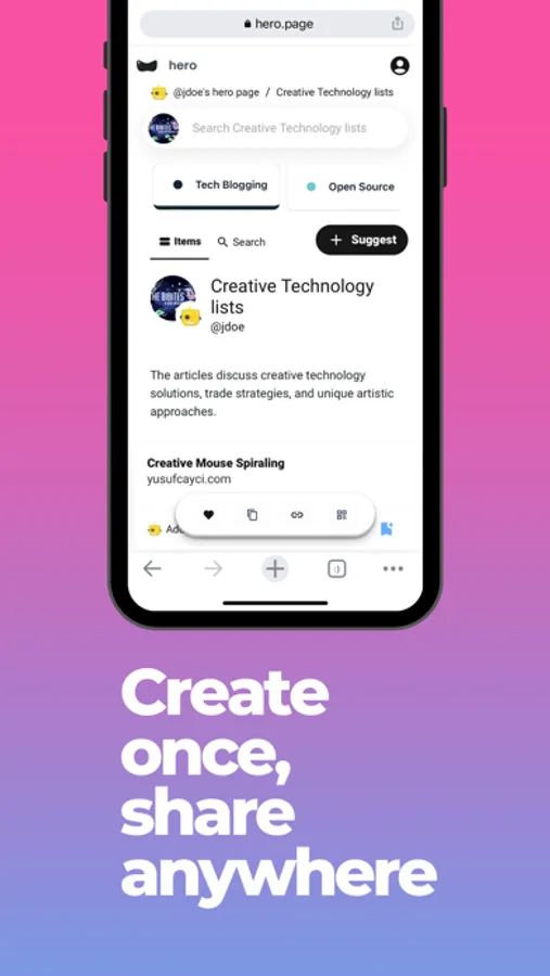Hero lets you create Spaces with unlimited lists, and save & share links to the things you find on the internet!