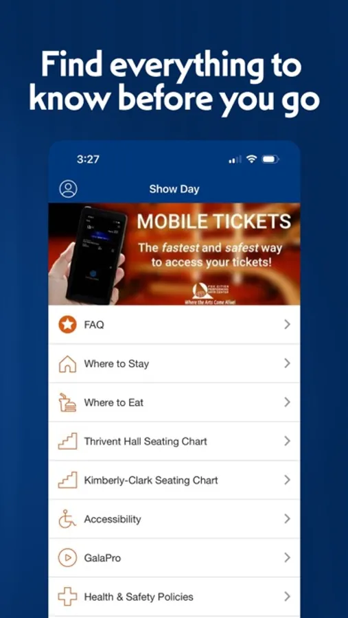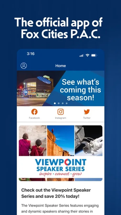 The Fox Cities Performing Arts Center is pleased to share the FCPAC app! With the aid of the app, patrons may now connect their account for mobile ticket access and entry at the Fox Cities P.A.C. In addition, this app also provides information and links to make the most of your visit to the Fox Cities P.A.C. including information on planning your visit, parking, pre-ordering drinks & refreshments, accessibility services, and more. You can also see the full event lineup, purchase tickets, learn about community engagement & education initiatives, and read our health & safety policies.