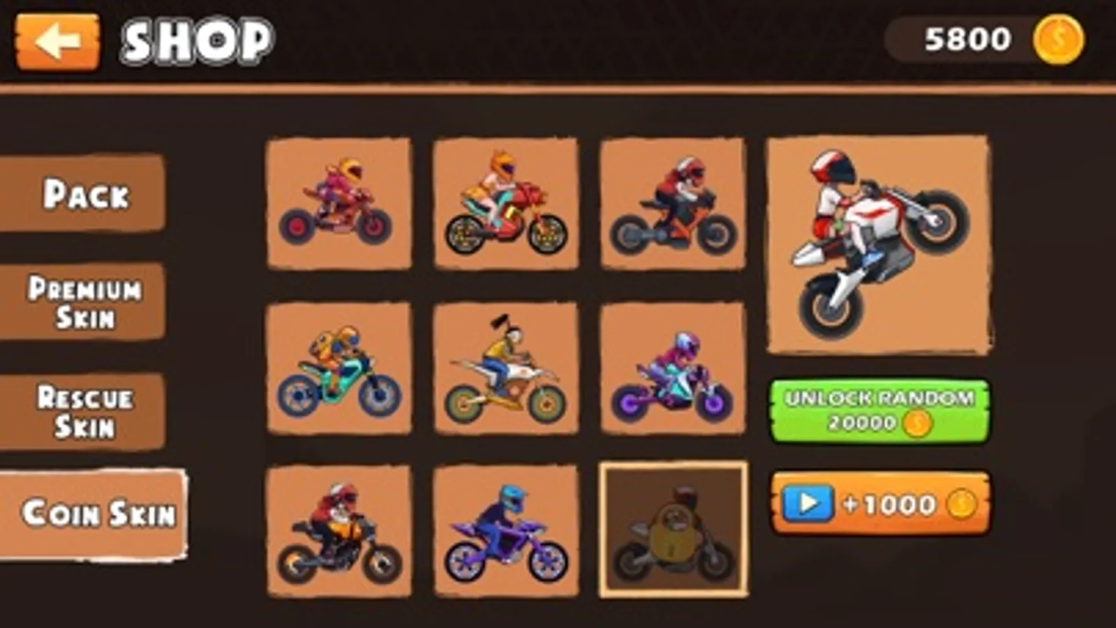 - Diverse types of motorcycles, colors, and different skins