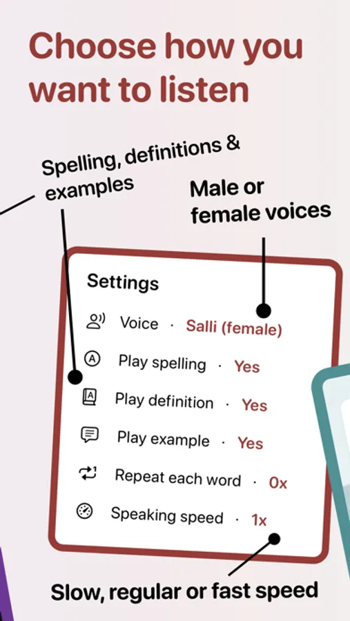 3. Listen to words and example sentences being spoken aloud in clear, natural English!