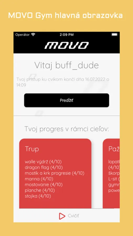 MOVO GYM je aplikácia ktorá ti pomáha rozvíjať tvoju celkovú fyzickú zdatnosť. Na cvičenie nepotrebuješ žiadne špeciálne náradie, každý tréning je iný, ale hlavne každý tréning sa prispôsobuje tvojej aktuálnej fyzickej zdatnosti.
