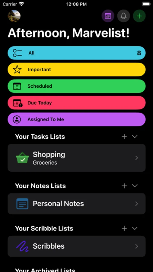 Marvelist is the to-do app that allows you to create personal and shared to-do lists, right at the tip of your fingers. Easily keep track of tasks seperated out into different lists, and make those lists available to your friends and family, so you can work on tasks and reminders together!