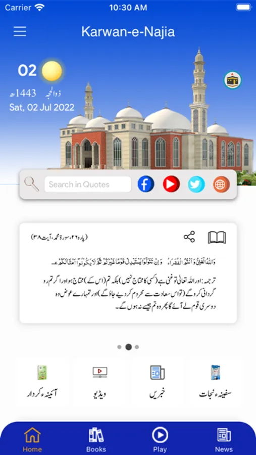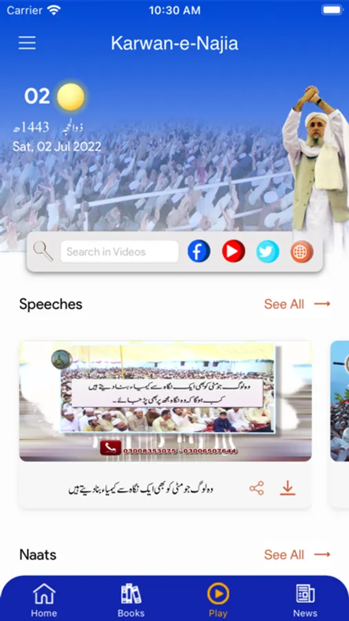 Using this app you can watch all latest speeches, listen new naats and read all books of Karwan e Najia.