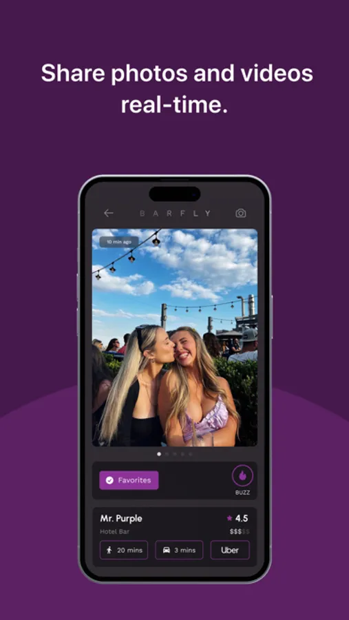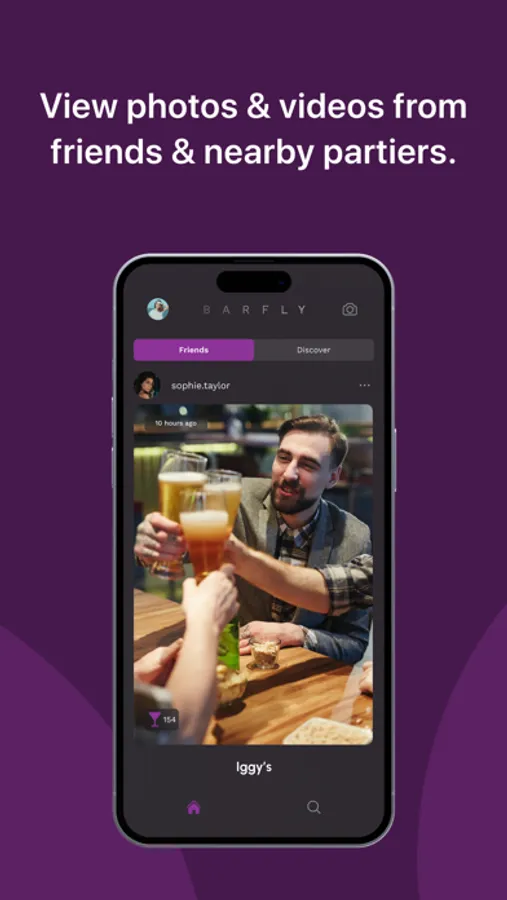 Post photos and videos from bars and share between friends.