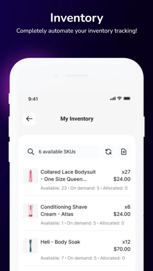 - Inventory tracked in the app - "No more spreadsheets" !!