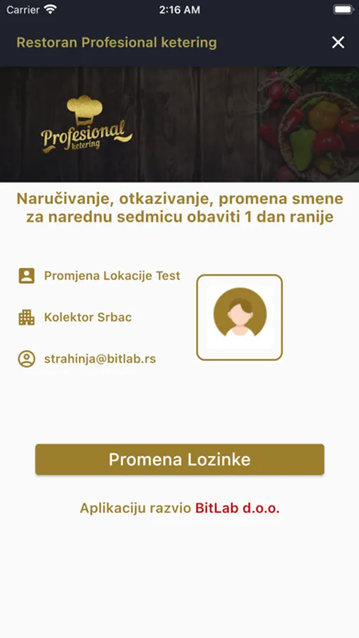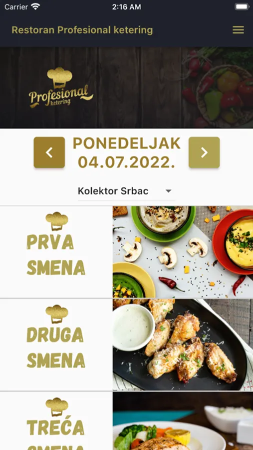 Aplikacija namenjena za pojednačno i zbirno naručivanje toplog obroka za radnike firmi koje imaju ugovor sa restoranom Professional ketering, Beograd.