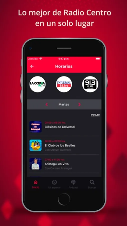 Escucha Alfa 91.3, Joya 93.7, La Z 107.3, Universal/La Octava 88.1, El Fonógrafo 690, Radio Centro Deportes 1030 y muchas estaciones más en streaming, disfruta de los podcasts de Audio Centro y mantente informado con las voces más reconocidas de la radio.