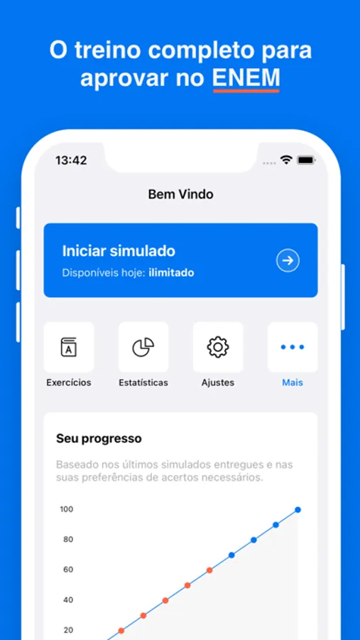 O Simulados ENEM coloca você no ritmo da prova, com questões oficiais, simulados cronometrados e estatísticas detalhadas para focar no que realmente importa.