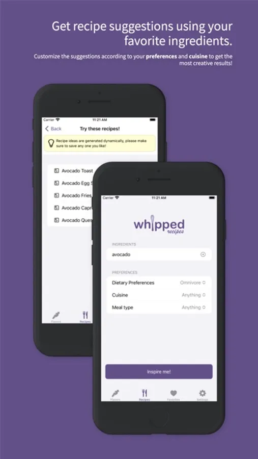 Whipped Up is a unique app that leverages modern Machine Learning techniques to help you combine ingredients while cooking or shopping. It also provides great tips on dishes you could cook with what you have and create excellent and unique recipes.