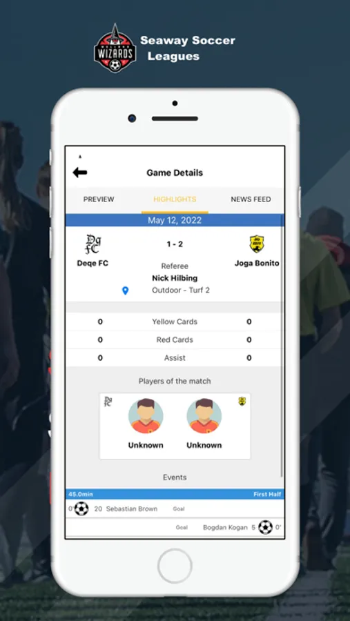 - Game news feed will allow for teams to view highlights, pictures and posts for the specific match