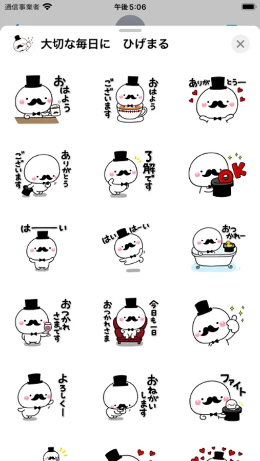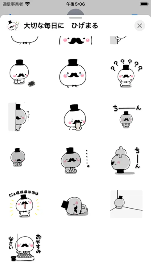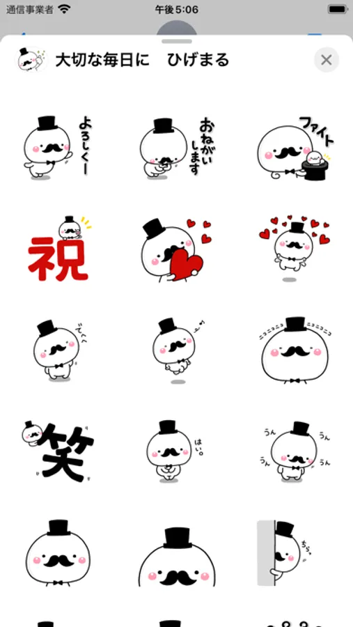 おひげを生やした新キャラ「ひげまる」です。無難に使える内容のみ厳選している白キャラです。【作:いしいともこ】