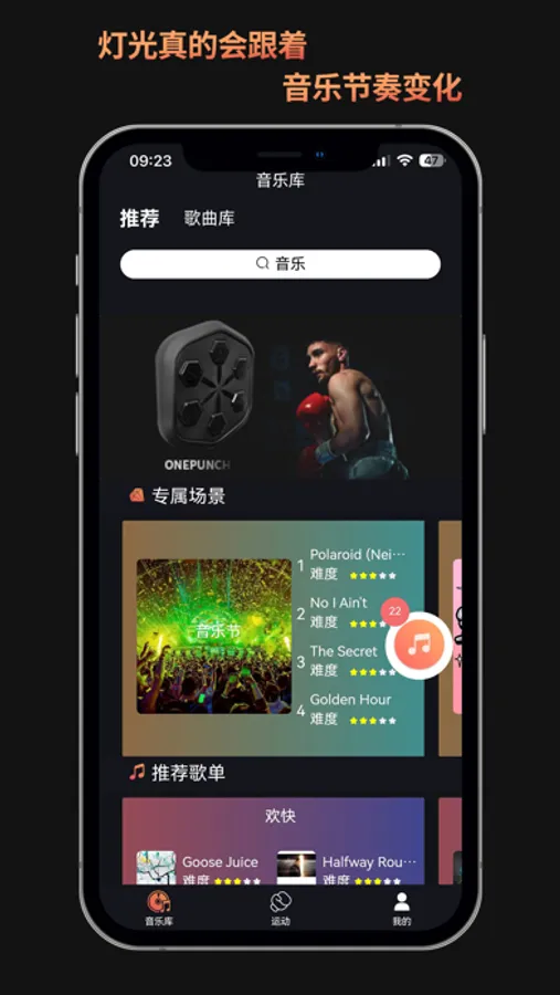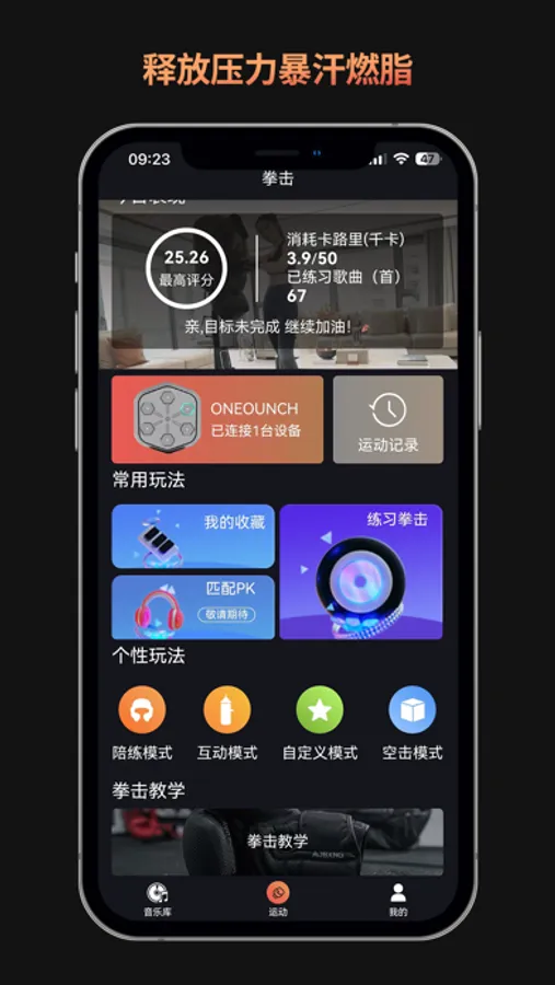 提供了上千首动感流行音乐,每首音乐都经过精心选择,以适应拳击的节奏。每一拳的击打时机都与音乐的节奏卡点相匹配,让用户在拳击训练中能够更好地感受音乐的指引和激励