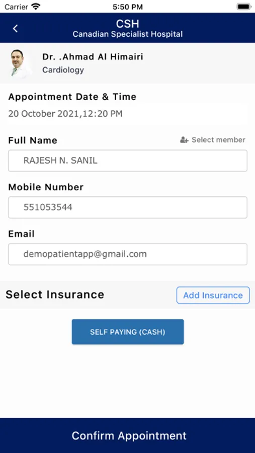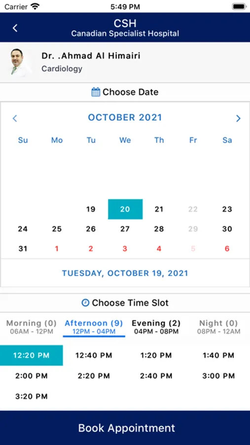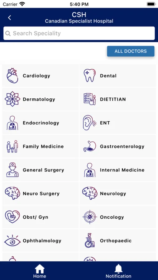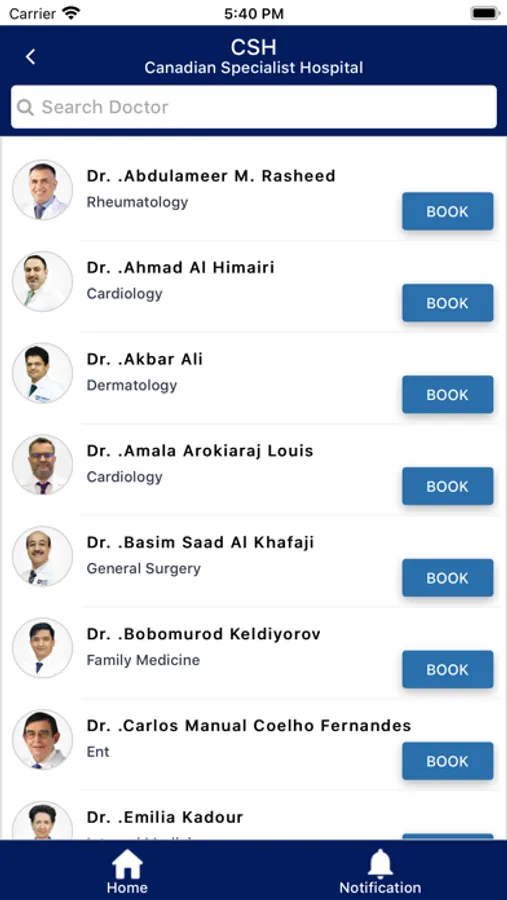 ● Search for available appointment slots of the Canadian Specialist Hospital doctors and book appointments with them.