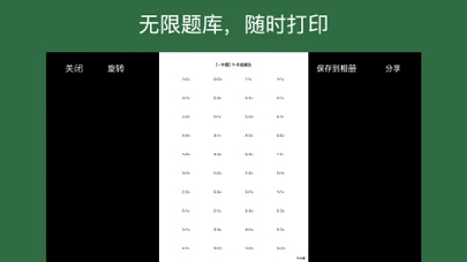 * 试卷自由生成:自定义题目数量、题型(加减乘除/小数/分数),一键生成试卷;