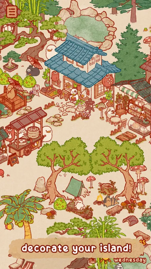 Entice cute bunny tourists to pay your island a visit! Decorate and personalize your own island with all sorts of toys, plants, and buildings. Relax and enjoy the calm and cozy island ambience, synced to your time of day〜