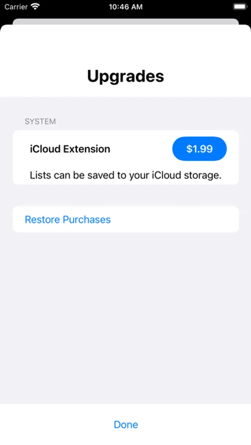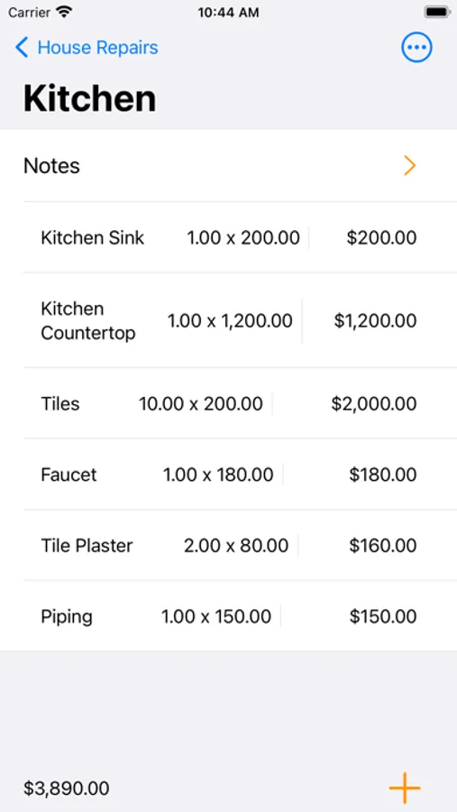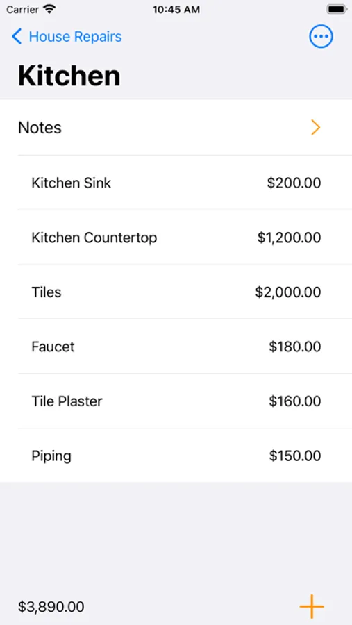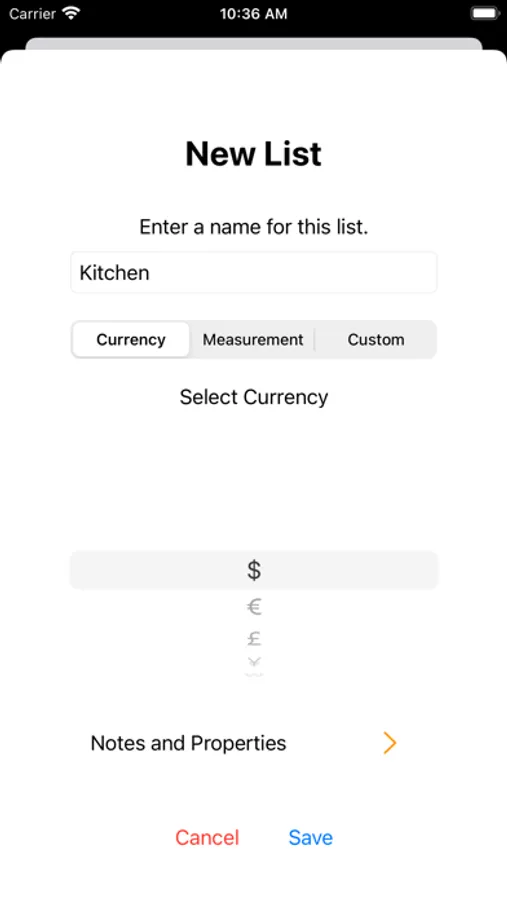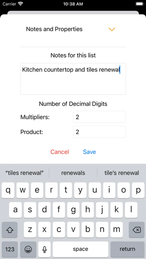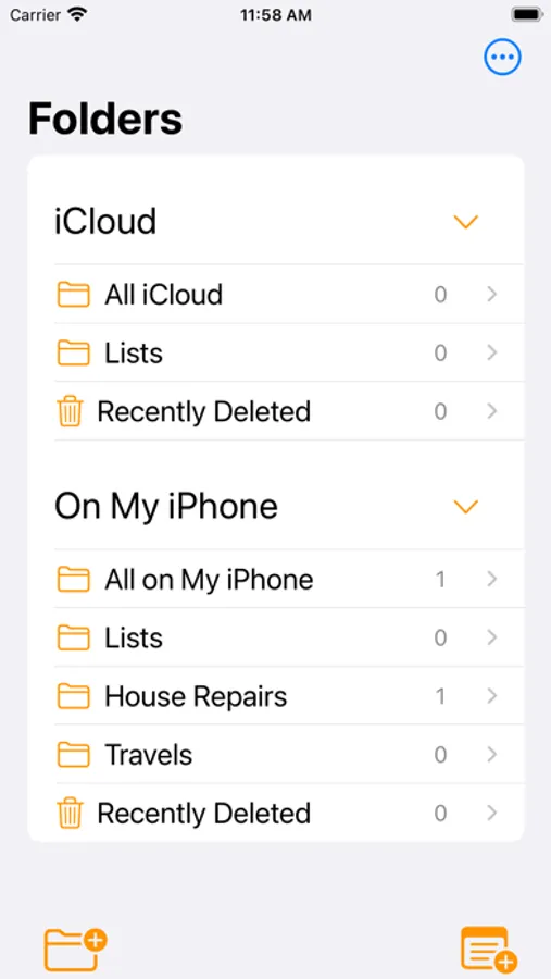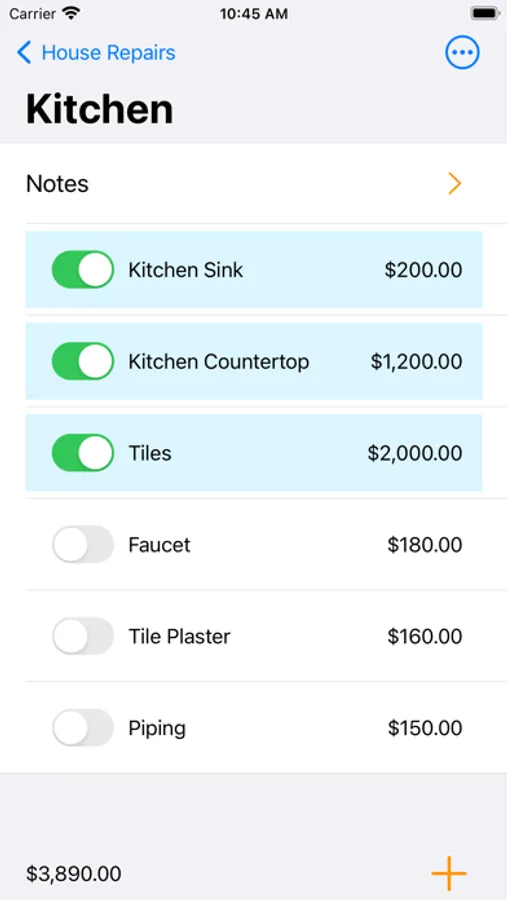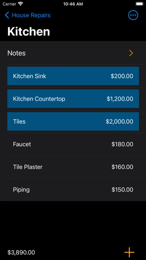 - Notes about the list can be entered. Notes can be shown or hidden.