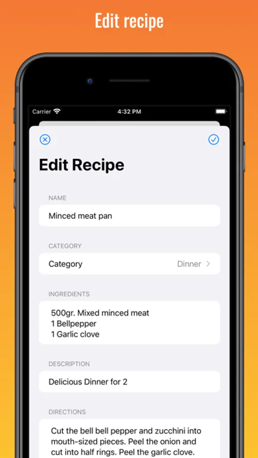 Have you also often had the problem of not finding the right recipe despite flipping through your recipe book forever? Don't you also want a better solution and less paper notes and piles in your kitchen? Then I now have the right app for you! With the RecipeApp you can store all your recipes in one application. You will benefit from a modern design, a simple functionality and still have a fast and reliable app at your side. The perfect addition for any cooking enthusiast. Of course, the app is also a great fit for you if you only cook occasionally or rarely follow a strict recipe.