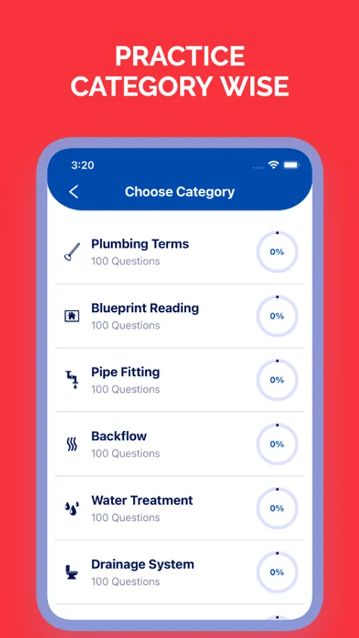 Once you have done enough practice with the questions in different categories, you can Take a quick mock test to check your knowledge on the various subjects like Plumbing Terms, Blueprint Reading, Pipe Fitting, Plumbing System, Plumbing Code and other plumbing topics.