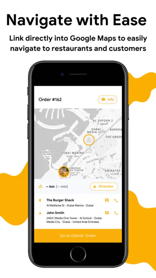 - The app works alongside Google Maps, allowing easy navigation to both the restaurants and customer locations.